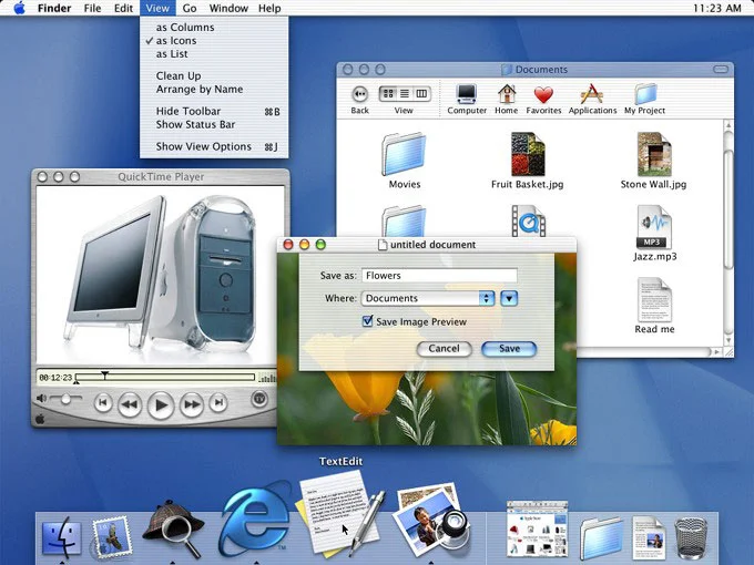 The original Mac OS X 10.0 reflected the translucent plastics of early 2000's Macs.